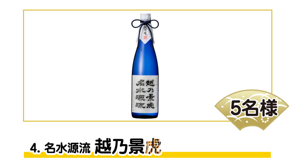 - 越後の英雄・上杉謙信が青年期を過ごした新潟県長岡市(旧栃尾市)で、160年に渡り醸造を続ける蔵元が輩出した銘酒「名水源流 越乃景虎」。昔ながらの大吟醸で、高嶺錦を原料米とした新潟流吟醸造りが、現代に復活されました。