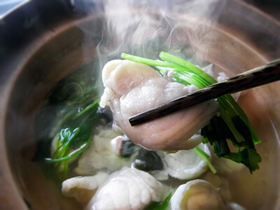 - 旬のとらふぐを素早くさばき、お刺身、皮刺し、ふぐ鍋、ひれ酒用ひれがセットになりました。薄造りにしたお刺身は贅沢な食感と歯応えが絶品!! 寒い冬にはふぐ鍋でホクホク・ウマウマをご堪能ください。