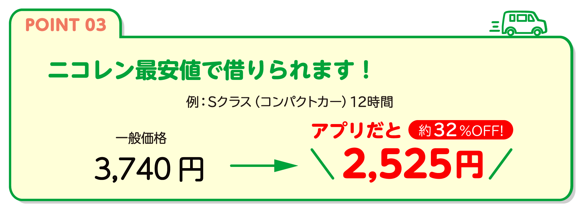 ご予約は、車両選択時にプラチナレーベルマークがついた「プラチナ車両」をお選びください。そして、なんと! プラス料金はございません!!! ご予約は先着順です。週末・休日などのご予約はお早めにどうぞ!