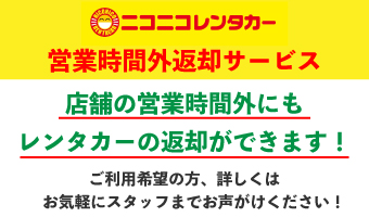 店舗紹介 | 営業時間外返却サービス始めました!店舗の営業時間外にもレンタカー返却出来ます!是非ご利用下さい!