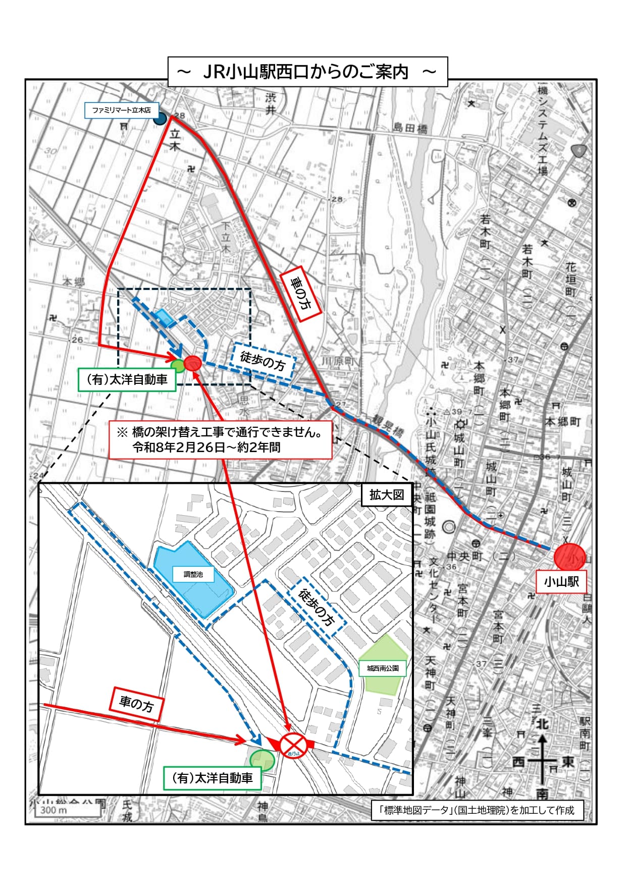 アクセス | @近隣橋梁 通行止めのお知らせ@ 現在、当店近隣の橋が工事のため通行止めとなっております。 車両・歩行者ともに通行できませんのでご注意ください。 ご来店の際は、店舗情報に掲載しております迂回路マップをご確認のうえお越しくださいますようお願いいたします。 JR東北本線 【小山駅】より、徒歩約25分。 駅西口を出て県道263号線(県道31号線)を 西へ約1.2km進む。 ↓ 橋を渡り(観晃橋西)の信号を通過。 さらに道なりに約50m進む。 ↓ 左手の細い路地に入り、 西へ約650m直進。 ↓ 左手にある「太洋自動車」が当店です。 ※小山駅西口より車で約5分、 駅での受け渡し・宅配・駅送迎は一時中止しております。 |