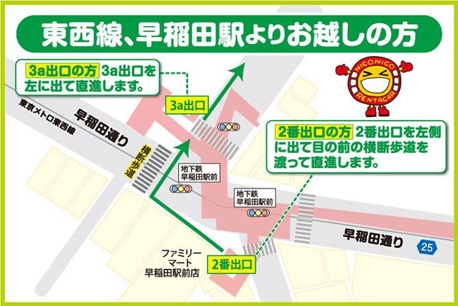 アクセス | 東京メトロ東西線【早稲田駅】より・・徒歩約7分 【3a出口の方】3a出口を左に出て直進します。 【2番出口の方】2番出口を左側にでて目の前の 横断歩道を渡って直進します。 ↓ 道なりに約550m進みます。(早稲田通りを横切ります) 途中、早稲田鶴巻町西の信号があります。 早稲田鶴巻町西信号を直進に過ぎて一つ目に でてきた信号を右に曲がります。 ↓ 右手に見えるエネオスのガソリンスタンドが当店です! 都電荒川線【早稲田駅】より・・徒歩約6分 出口を出て、新目白通りを江戸川橋方面へ 約450m直進します (早稲田駅を背にしてりそな銀行が見える方に直進です!) ↓ 右手に見えるエネオスのガソリンスタンドが当店です! |
